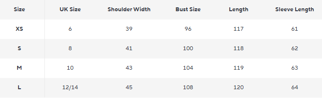 Loose fit, extra-long length, self-tie belt, single-button closure, long sleeves.